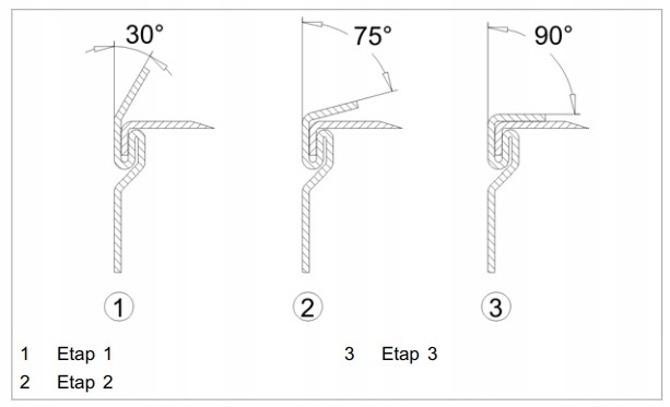 пристрій працює в діапазоні товщини листа від 0,8 до 1,25 мм (Чорний оцинкований сталевий лист). Пристрій автоматично адаптується до товщини листа, а самонастраивающаяся подача забезпечує рівномірний і герметичний спосіб закриття замку.