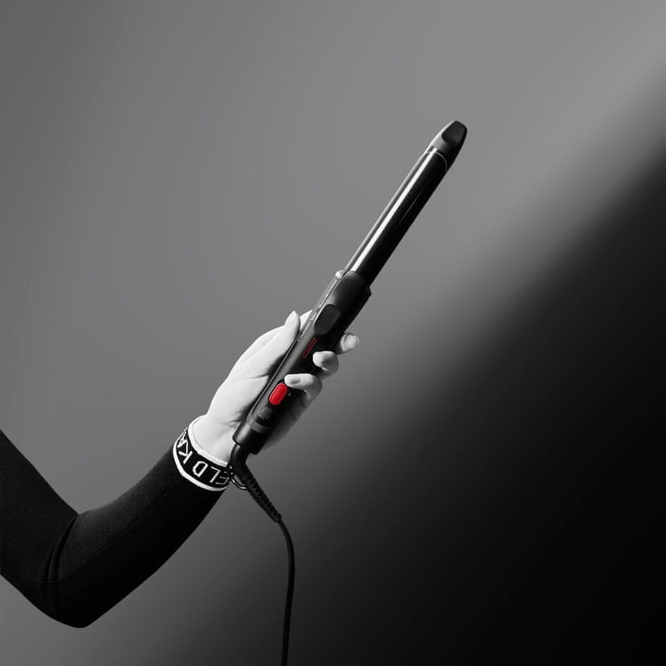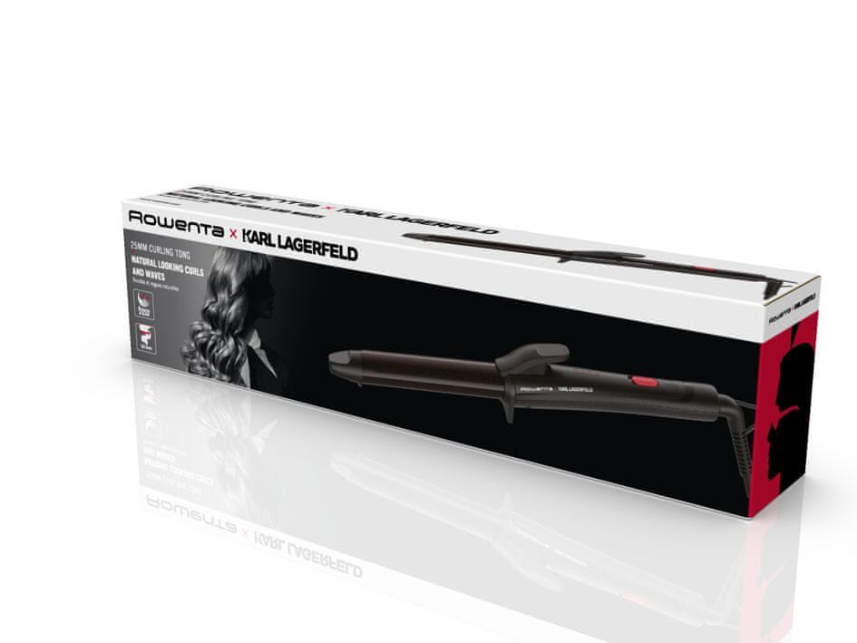 Rowenta x Karl Lagerfeld CF321L щипці для завивки волосся, 25 мм, кератин і глянсове покриття, природні хвилі і локони, постійний 200°C, швидкий нагрів, холодний наконечник, чорний/червоний колір