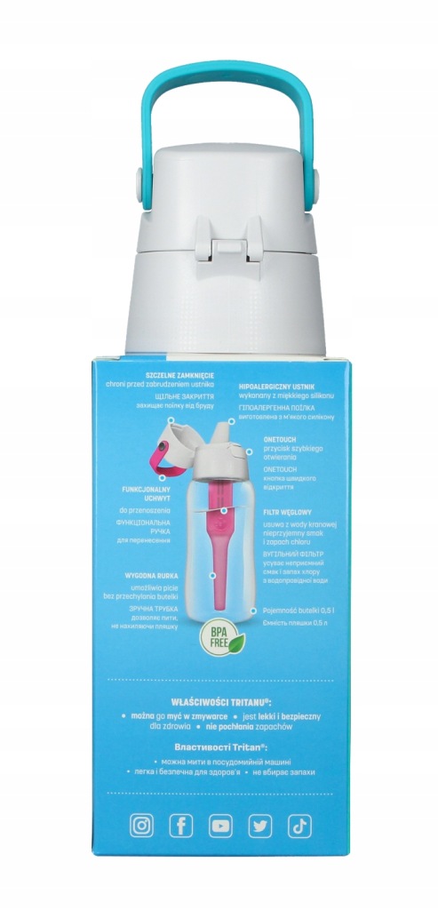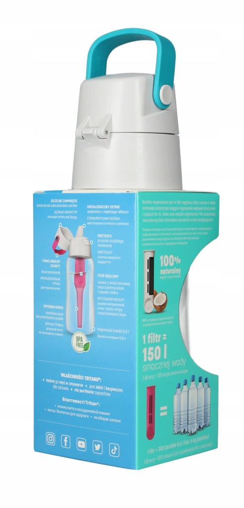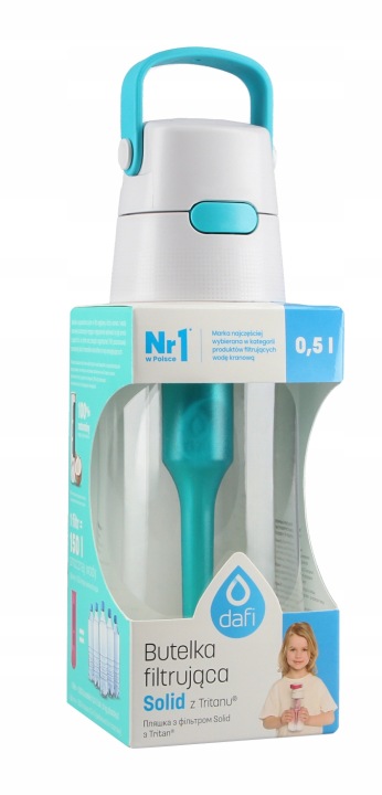 пропонована пляшка Dafi Solid має ємність 0,5 л, тому вона працює щодня – вона не надто важка, і в той же час запас води достатній для задоволення спраги. Завдяки їй ми відмовляємося від покупки води в одноразовому пластику і захищаємо навколишнє середовище. Це також велика економія, оскільки одного фільтра достатньо, щоб очистити до 150 літрів води.