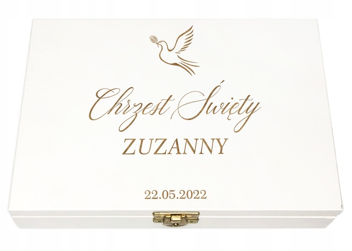 деревʼяна коробка з гравіюванням ідеально підійде в якості подарунка на Святе Хрещення дитини. В комплект входять столові прилади з нержавіючої сталі з тисненим малюнком ведмедя , які спонукають дитину навчитися користуватися всіма елементами набору.