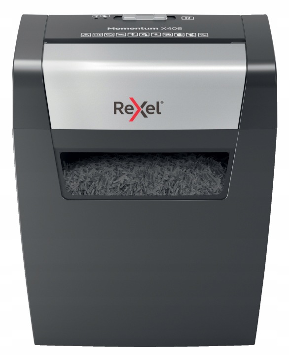 має силу, щоб знищити більше! Подрібнювач Rexel Momentum X406 знищує до 6 аркушів одночасно і може працювати безперервно протягом 3 хвилин - ідеально підходить для домашнього використання. Ріже на конфетті 4 x 28 мм, гарантуючи безпека на рівні P4. Він має 15-літровий контейнер для обрізки, який вміщує до 125 аркушів формату А4.