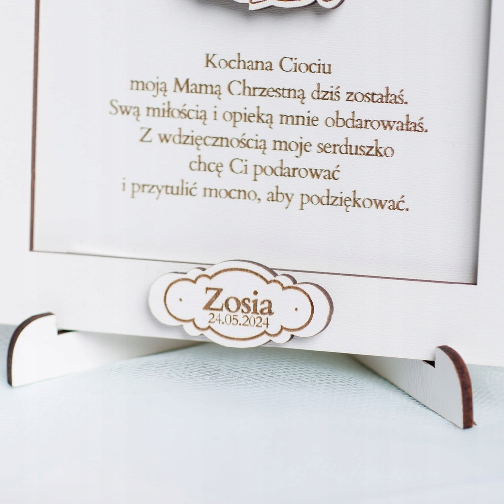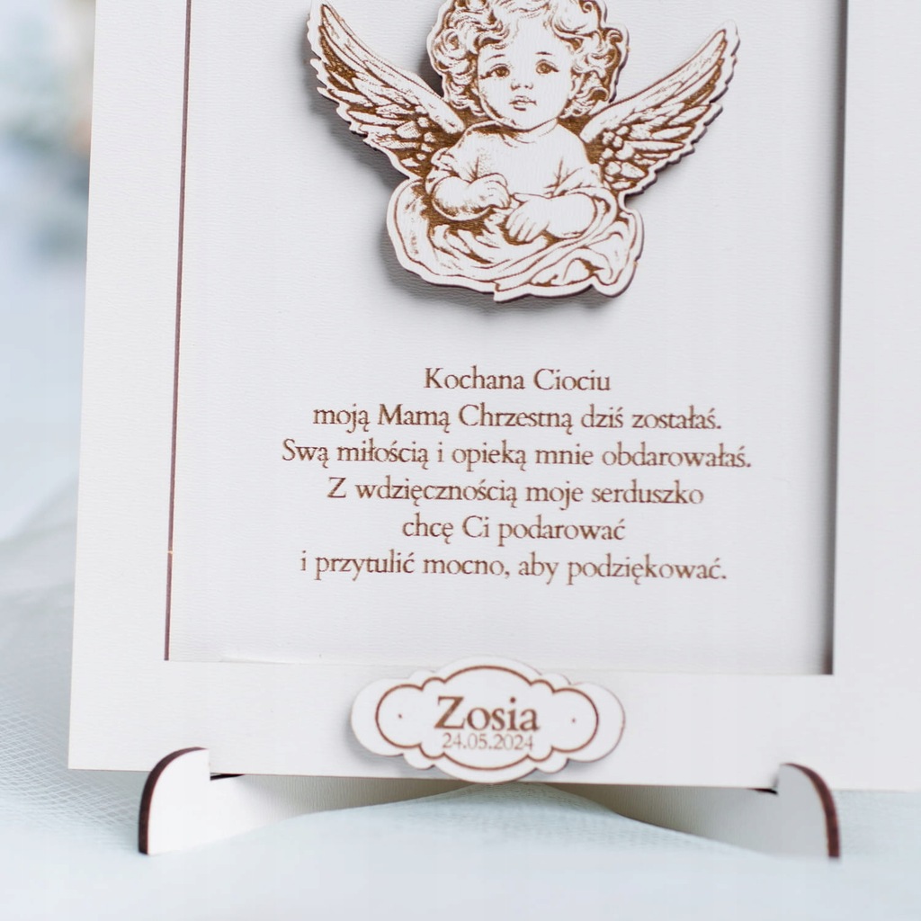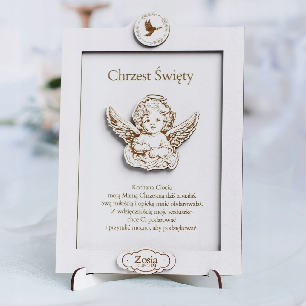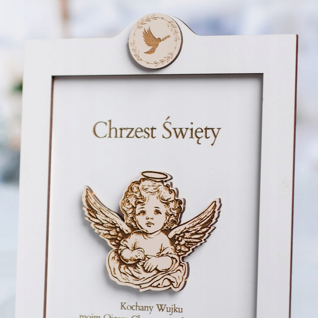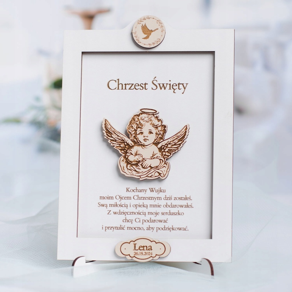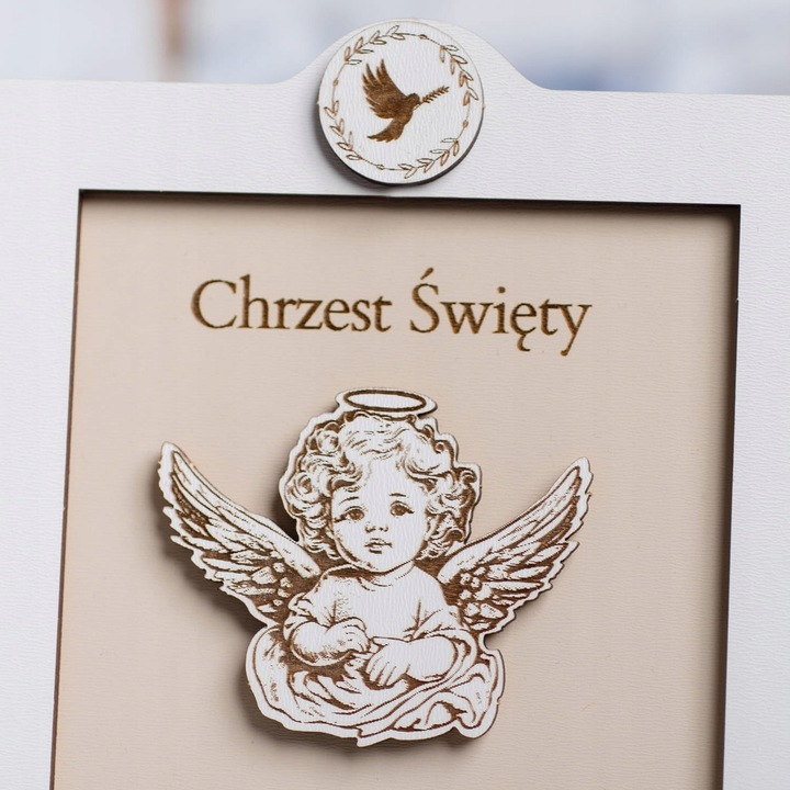 персональна табличка з нагоди святкування Святого Хрещення. Білий або кремовий значок розміром 17x13 см з 3D-гравіюванням.
