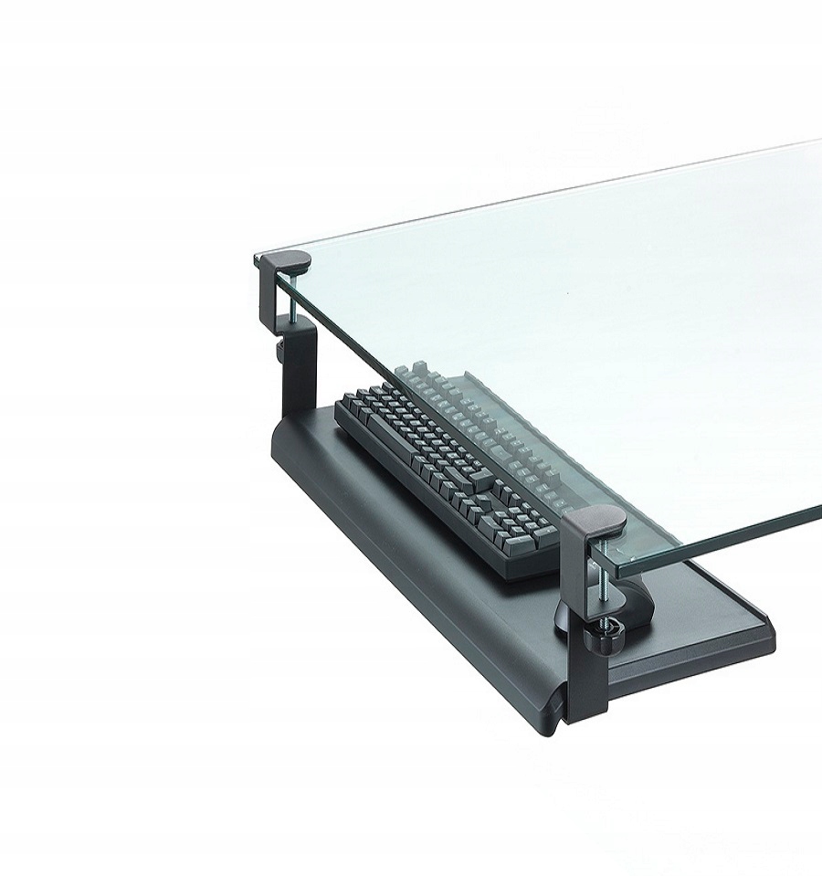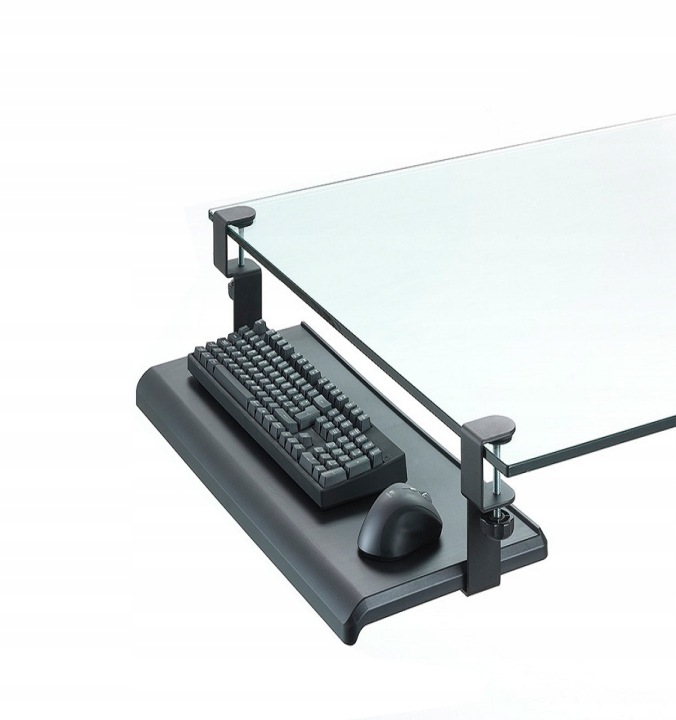 ящик для клавіатури оснащений міцними металевими затискачами, які дозволяють легко і швидко встановлювати його на будь-яку поверхню товщиною до 40 мм без необхідності свердління меблів. Його розміри складають 70 х 31 см, що також забезпечує достатньо місця для миші. Плавний рух напрямних ковзання дозволяє легко висуватися, а нековзна поверхня запобігає ковзанню клавіатури.