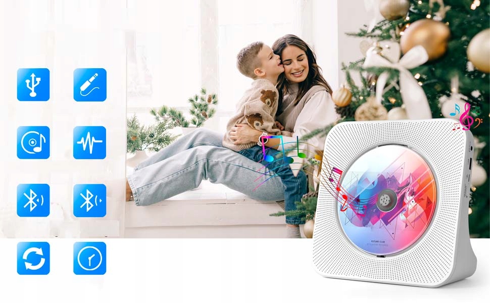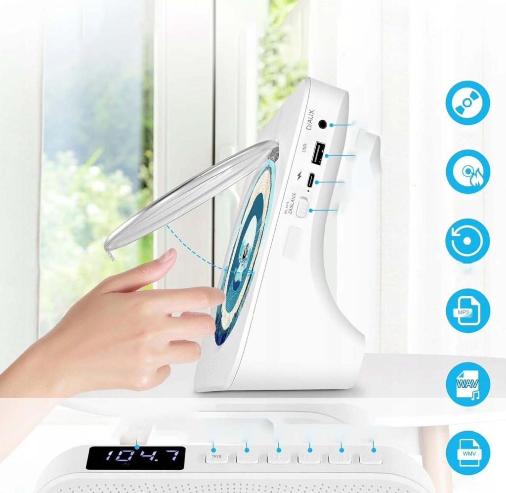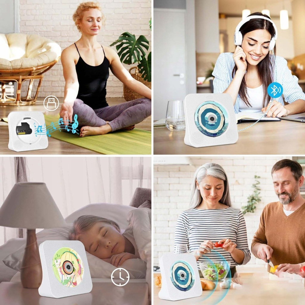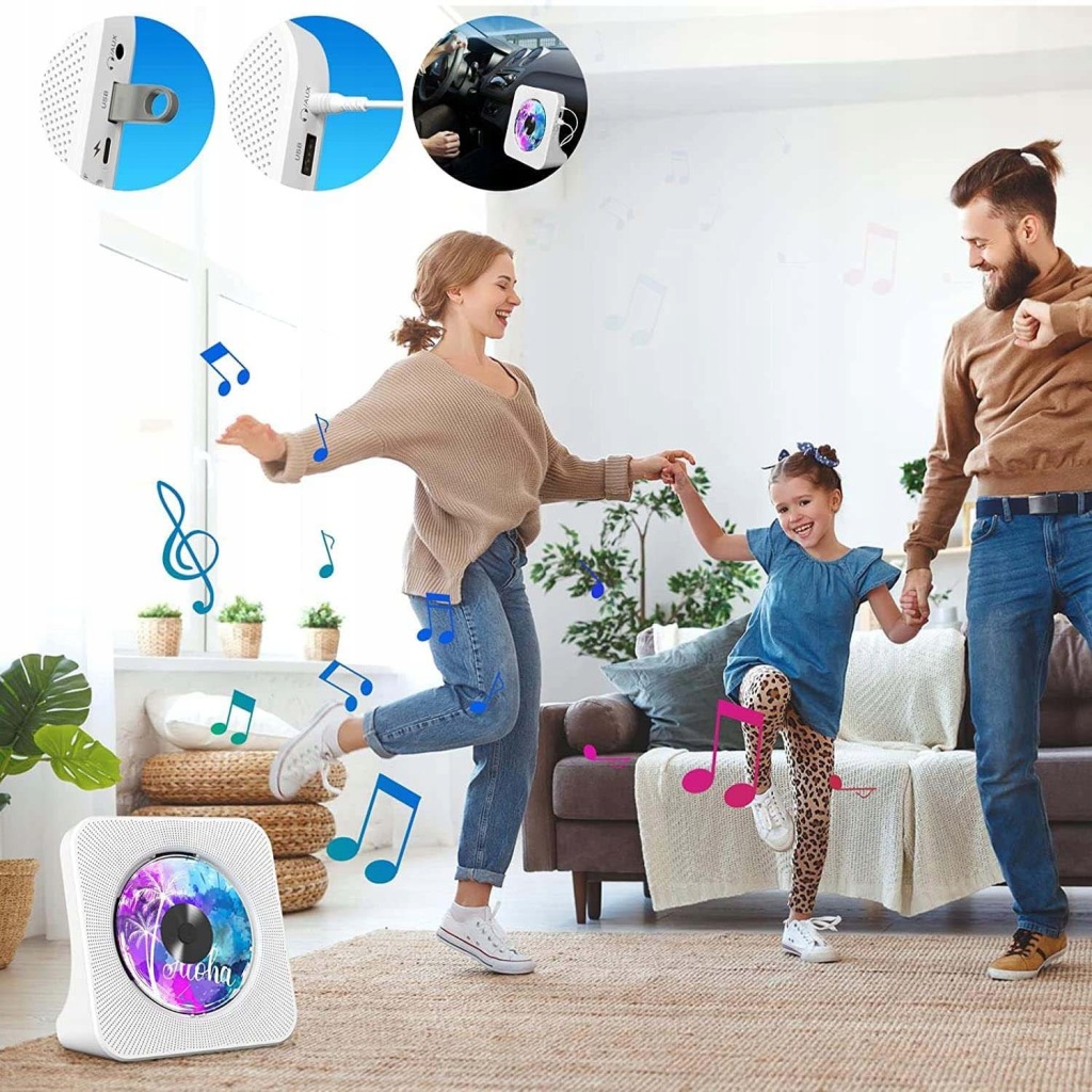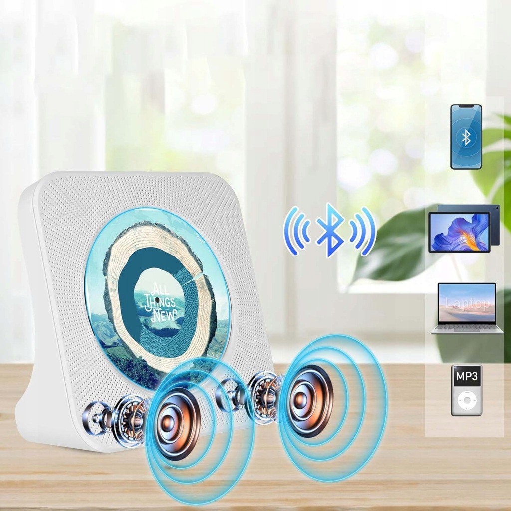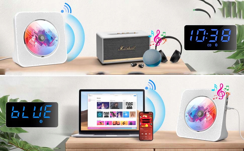 настільний CD-плеєр можна підключити до інших пристроїв з підтримкою Bluetooth (мобільний телефон/планшет/ноутбук/airpods). Вбудовані стереодинаміки HI-FI проектують і регулюють гучність в міру необхідності.