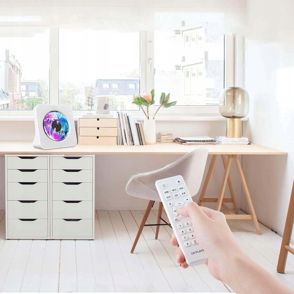 Бумбокс CD-плеєра може стояти на столі, обладнаному пультом дистанційного керування (батарея AAA не входить в комплект). Ви можете використовувати його у вітальні, спальні. Розроблений із захистом від пилу, тому вам не потрібно турбуватися про накопичення пилу