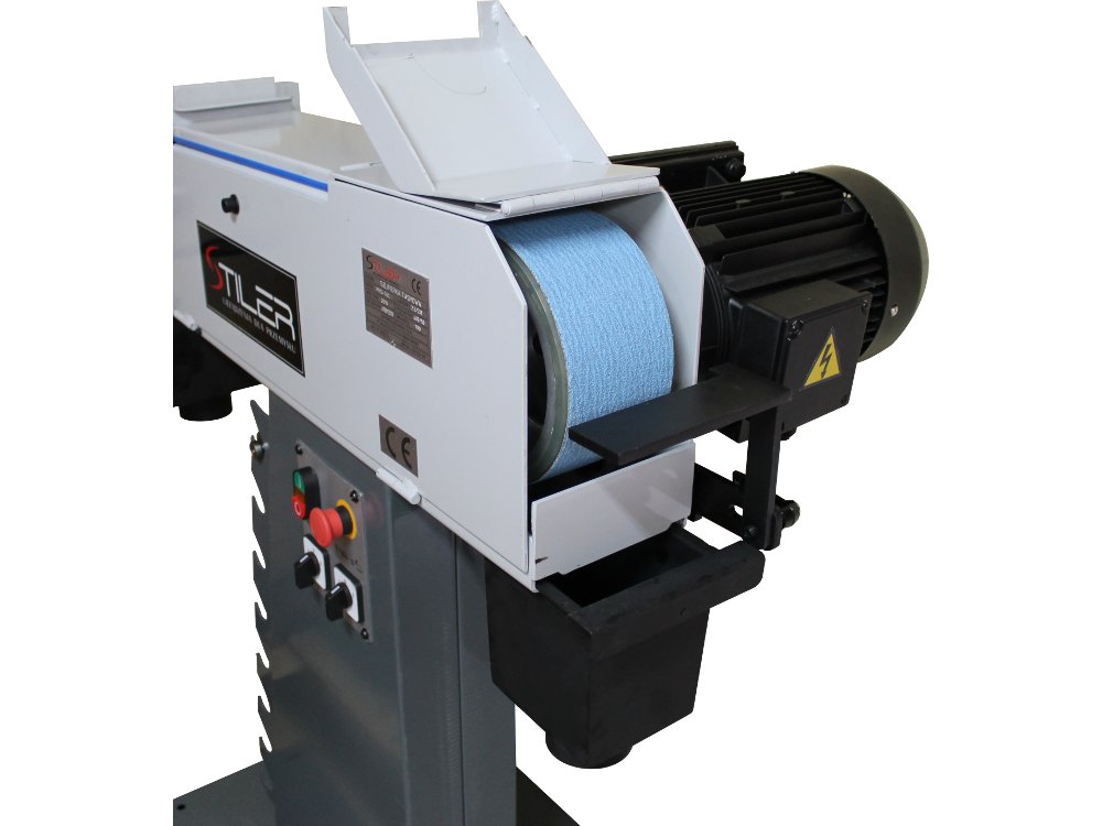 ✅ шліфувальний верстат також має вузол, що дозволяє шліфувати матеріал на абразивній стрічці, розташованій в задній частині машини.