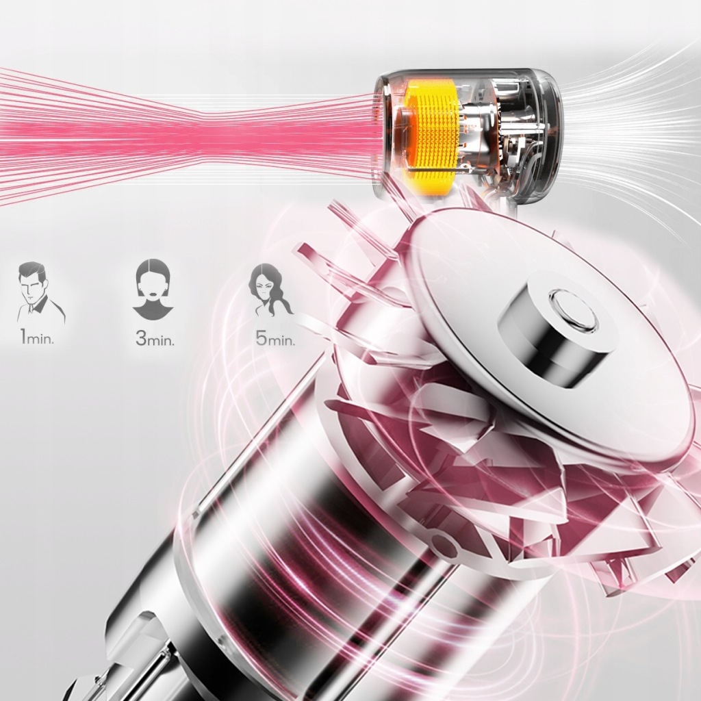 - швидкість сушіння: коротке волосся ~1 хв, середні ~3 хв, довгі ~5 хв