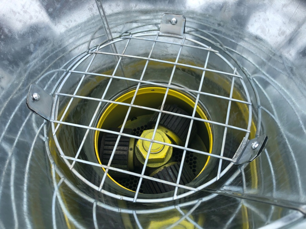 двигун з вентилятором повністю захований під кришкою, обладнаною вентиляційною решіткою і шафою для інструментів.