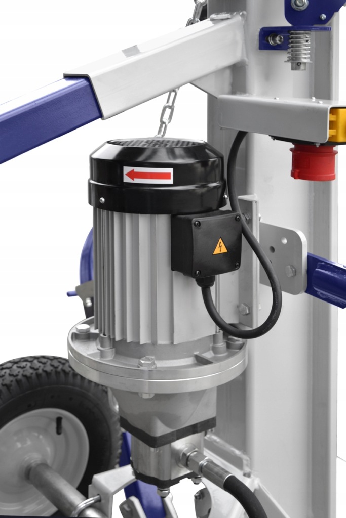 складаний бічний кожух також служить системою підйому важких колод і установки в вертикаль безпосередньо під клин (для підйому необхідно розібрати правий кожух).