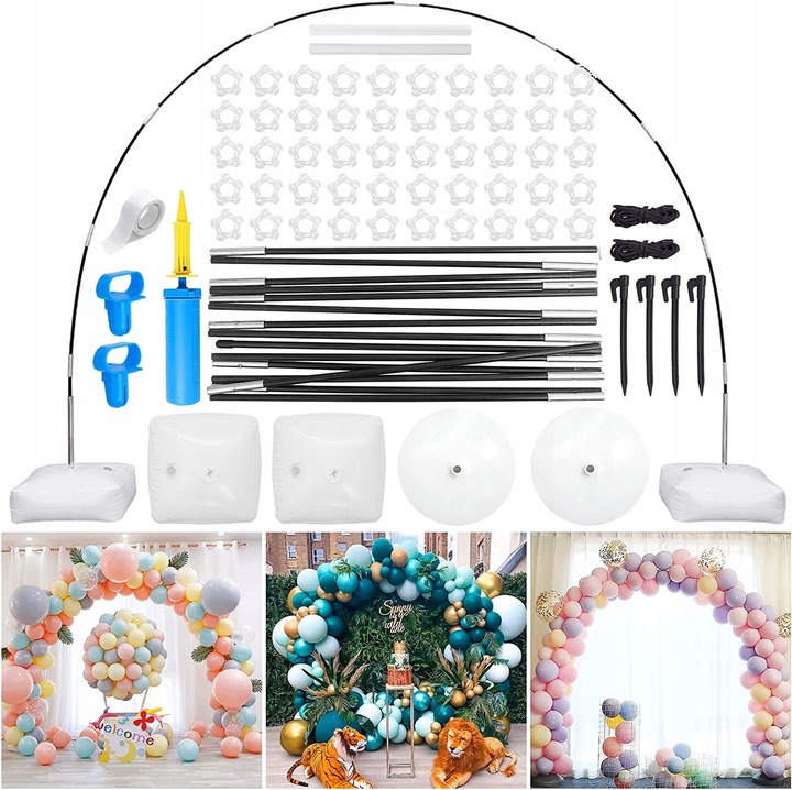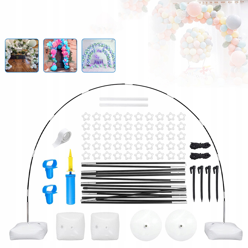 - Весільна прикраса гірлянда з повітряної кулі, підставка для арки включає в себе 15 складних стрижнів зі скловолокна, 2 підстави з ПВХ, 2 довгі труби з ПВХ, 2 мішка для води, 1 насос для повітряних куль, 50 затискачів для повітряних куль, 2 вузла для повітряних куль, 2