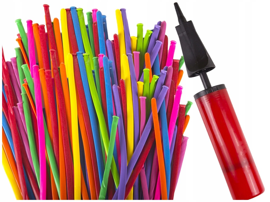 Повітряні кулі для моделювання барвисті довгі трубки 100шт + насос довгасті овальні