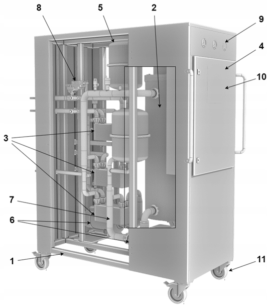 пристрій також оснащений шафою управління і зʼєднаннями силових середовищ.