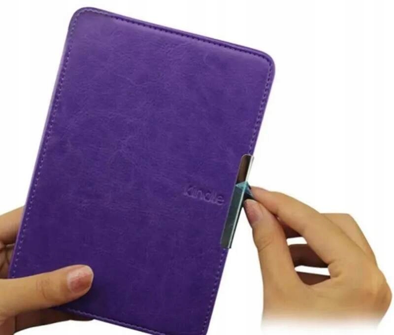 високоякісний чохол Durable Lockзі штучної шкіри Purpleдля читання книгAmazon Kindle Paperwhite 1, 2, 3 . Чохол забезпечує гарантований комфорт і надійний захист від несприятливих зовнішніх явищ. Закриття здійснюється на магніт , який щільно закриває корпус. У лівому нижньому кутку знаходиться ще один магніт, який управляє функцією автоматичного пробудження / сну в залежності від того, відкриваєте ви або закриваєте чохол.