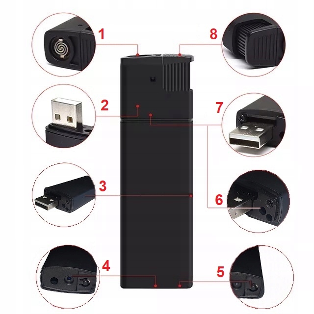 пристрій нічим не відрізняється від електричної запальнички. Він дозволяє непомітно записувати відео, знімати фотографії, а також переглядати в реальному часі завдяки підключенню до Wi-Fi. Крім того, він виконує функцію електричної запальнички.