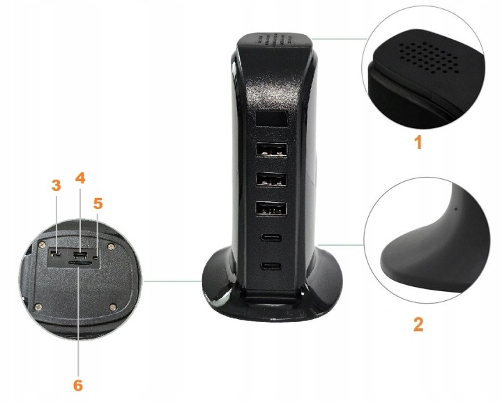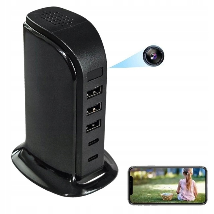 - зарядний пристрій 5xusb з камерою