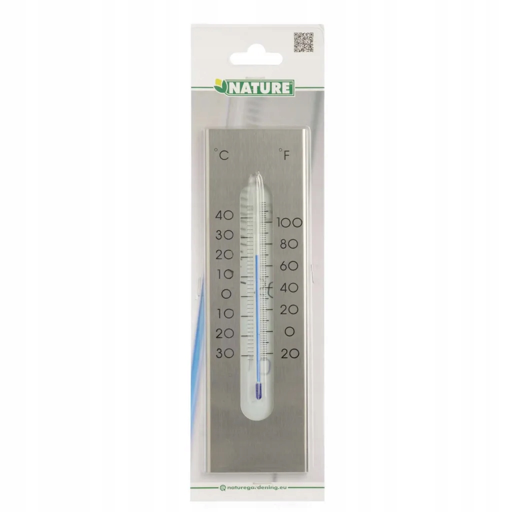 цей алюмінієвий настінний термометр марки Nature відмінно підходить для зовнішнього використання. Цей алюмінієвий термометр-це пристрій, призначений для встановлення на зовнішній стіні. Легко читається з діапазоном температур від -30 ° C до + 40°C; від -20°F до +100°F.