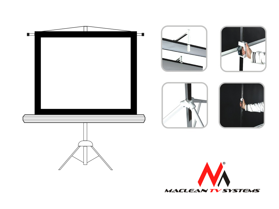 наші екрани відмінно підходять для домашнього кінотеатру, а також для широкого застосування в презентаціях. Екран Maclean MC680 забезпечує повну мобільність і високий комфорт при проведенні презентацій. Мега діагональ екрану! 112 " у форматі 1: 1!