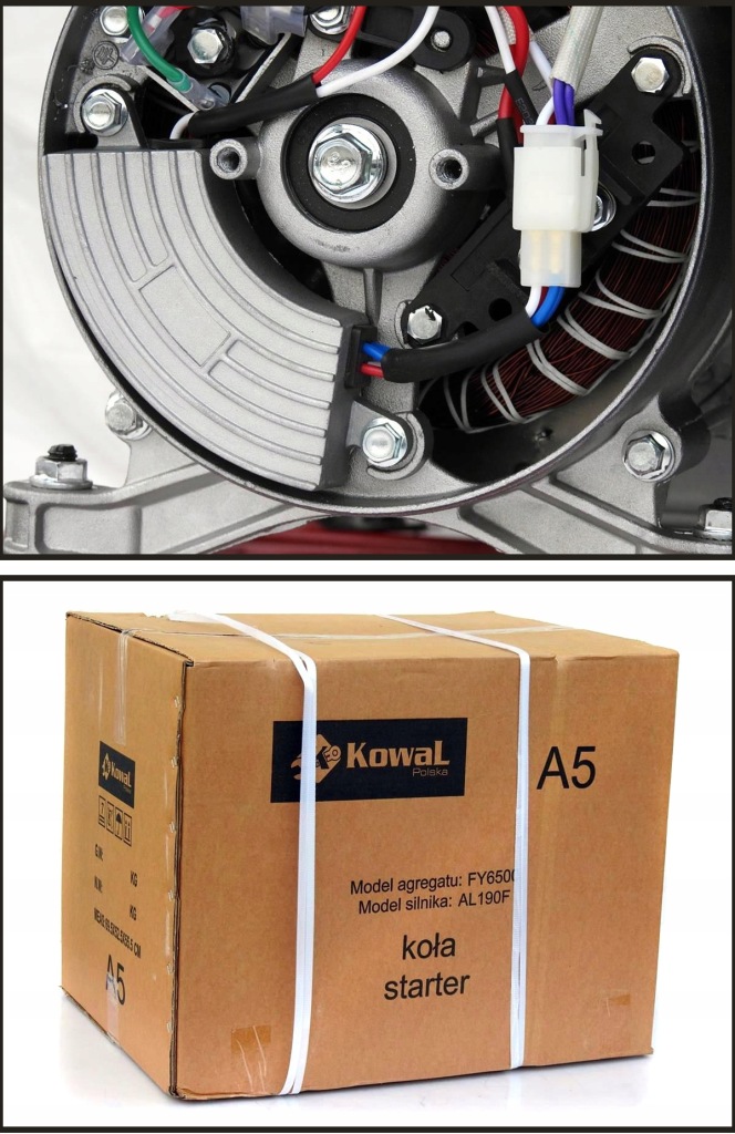 статор і Ротор складають майже половину вартості агрегату. Багато компаній мають тільки "мідну" обмотку на статорі шириною 110-130 мм.у всіх агрегатах фірми KowaL з потужністю двигуна 10,3 кВт використовується статор довжиною до 140 мм. Статор намотаний повністю мідним дротом.Мідний генератор працює з дуже популярним двигуном з символом: AL190F, який на замовлення марки KowaL Польща виробляється з високоякісних запасних частин, а також основних компонентів składowych.tj: вал, поршень, шатун, клапани. подробиці в наступній частині аукціону .