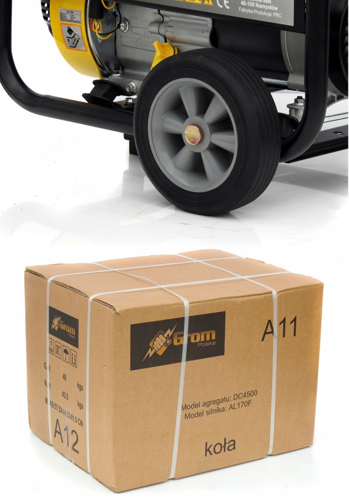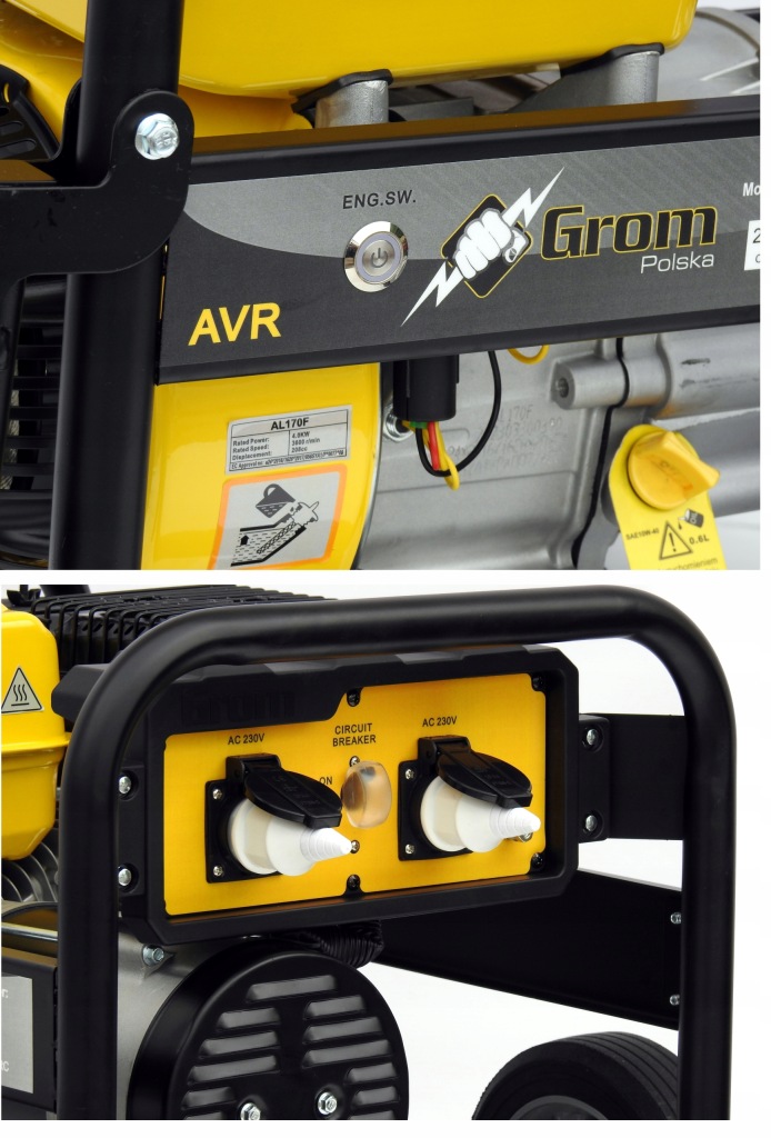 агрегат упакований в тверду картонну коробку з двома транспортними ременями.агрегат марки GROM Польща - це не тільки проста надійна конструкція, але і простота використання, агрегат оснащений сучасним світлодіодним вимикачем, який використовується для відключення агрегату. Для запуску просто потягніть за ривок, і пристрій готовий до роботи!