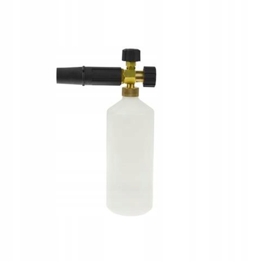 корпус з латуні гарантує тривале і безвідмовне використання. Піноутворювач дає набагато більше можливостей в порівнянні з мийками високого тиску оснащений вбудованим резервуаром для миючого засобу. Використовуючи піногасник, ми можемо використовувати більш сильну хімію (навіть агресивну), тому що миючий засіб не входить у внутрішню циркуляцію мийки високого тиску, а береться з бункера піногасника, затягнутого безпосередньо в пістолет високого тиску.
