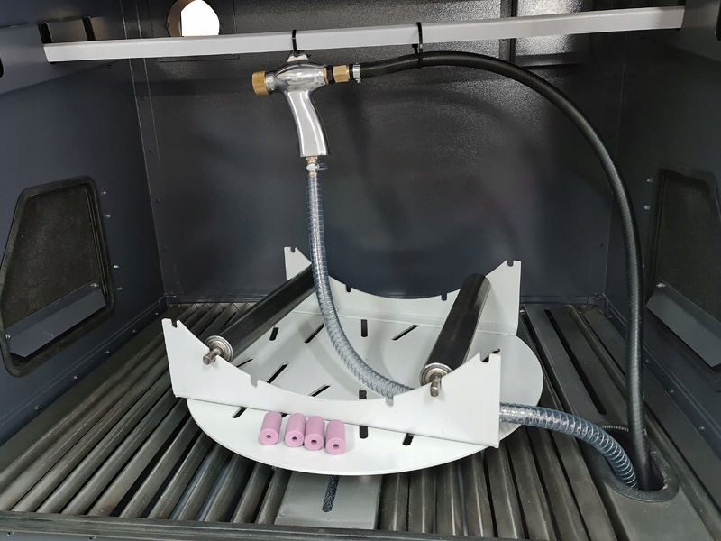 ✔️ одним з істотних переваг цього пристрою є можливість дозування різних видів абразивних матеріалів за допомогою клапанів і вакуумних пістолетів з керамічним соплом і трубок для дробоструминної обробки.