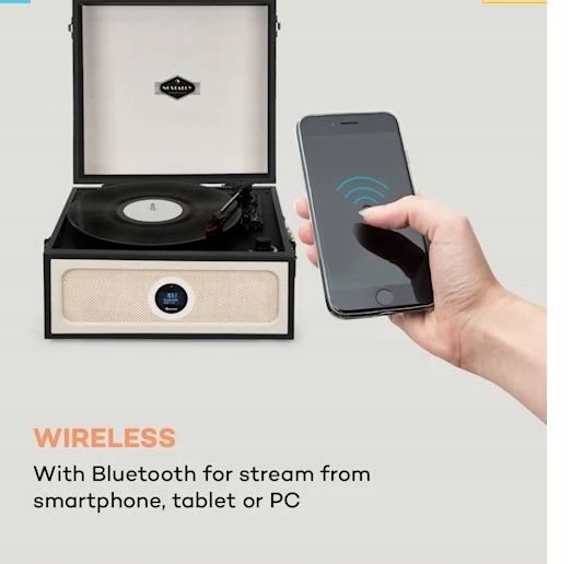 в його компактному корпусі вбудовані стереодинаміки, тому програвач відразу ж готовий до використання. На програвачі можна відтворювати вінілові платівки трьох різних розмірів. Сара Енн також має різні можливості відтворення: радіо DAB + і UKF відтворює кращі радіостанції, для