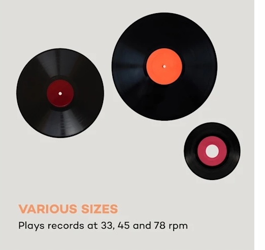 - різні розміри: відтворює диски зі швидкістю 33, 45 і 78 об / хв./min