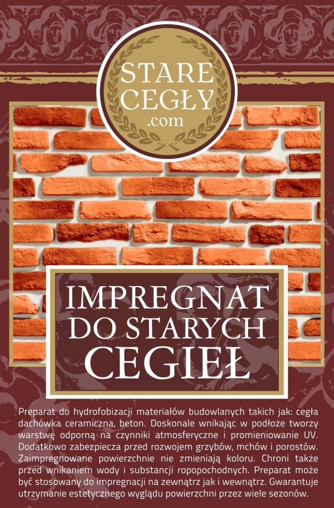 цей засіб призначений для гідрофобізації старої цегли та плитки зі старої цегли. Агент глибоко проникаючи в субстрат, утворює шар, що захищає від розливів, плям, атмосферних впливів і ультрафіолетового випромінювання. Крім того, він захищає від утворення грибків, мохів і лишайників. Поверхні, просочені препаратом, не змінюють колір. Він також захищає від проникнення води і нафтопродуктів в надра. Засіб ефективний як зовні, так і всередині. Забезпечує підтримку естетичного вигляду і підкреслює колір поверхні протягом багатьох сезонів.