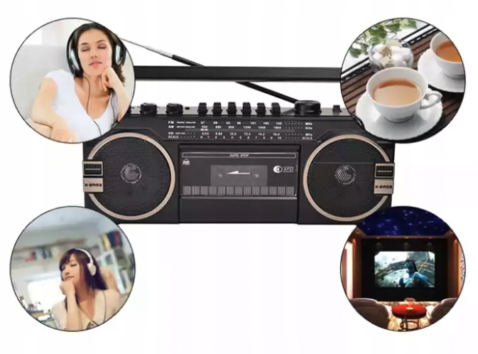 пристрій оснащений касетним програвачем, що дозволяє відтворити всю класику минулих десятиліть!