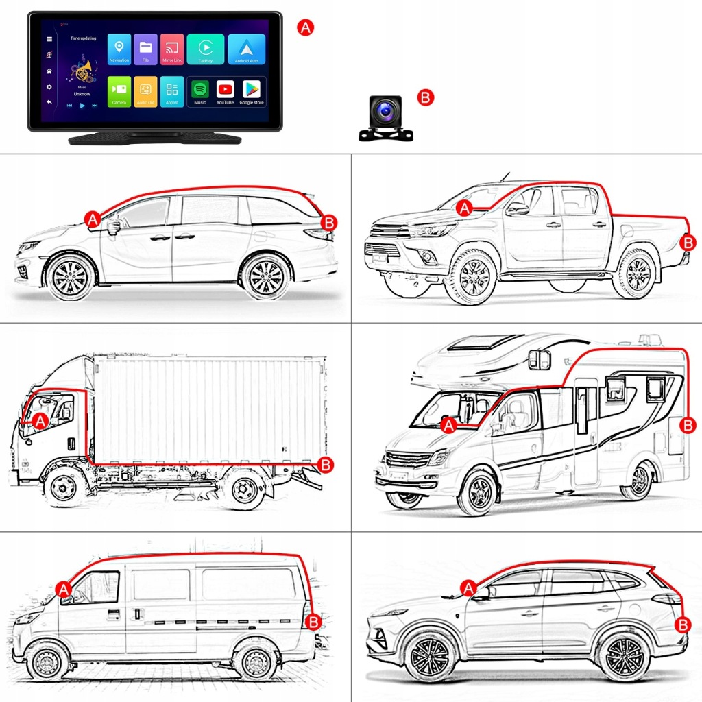✅дуже проста установка,просто прикріпіть підставку монітора до кабіни за допомогою стрічки 3M , що входить в комплект, або прикрутіть її!