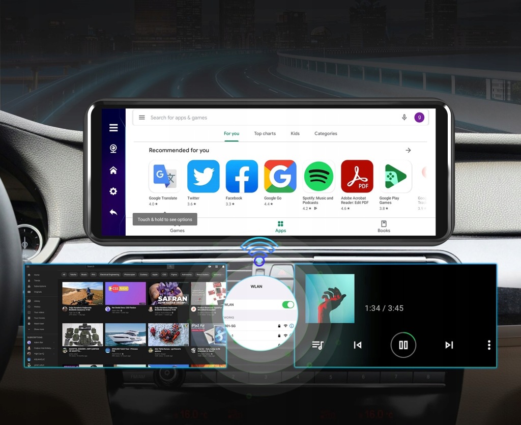 високоякісна Мультимедійна станція, високоякісний 10,26" сенсорний екран, який перетворює ваш автомобіль в справжній медіацентр. вбудована операційна система Android 13 з польським меню, дозволяє переглядати Інтернет, переглядати світові новини, грати в ігри. дивіться улюблені відео, переглядайте фотографії. радіо має вбудований гучного звʼязку, який підвищує безпеку під час водіння і дозволяє уникнути штрафів.