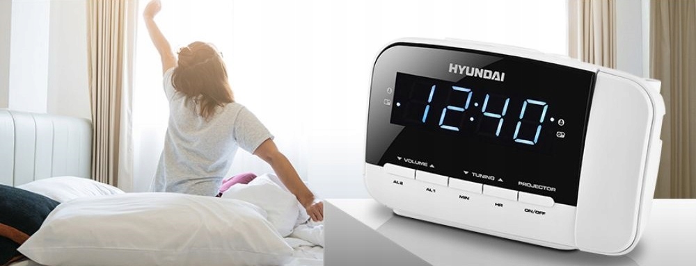 Радіогодинник Hyundai RAC4811PLLWW в білому кольорі мають цифровий FM / AM тюнер і 2 незалежних будильника.