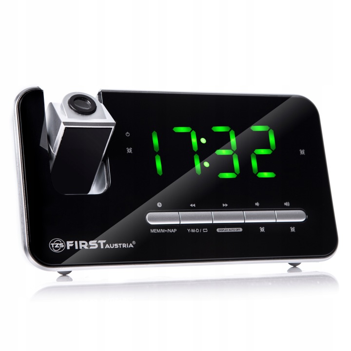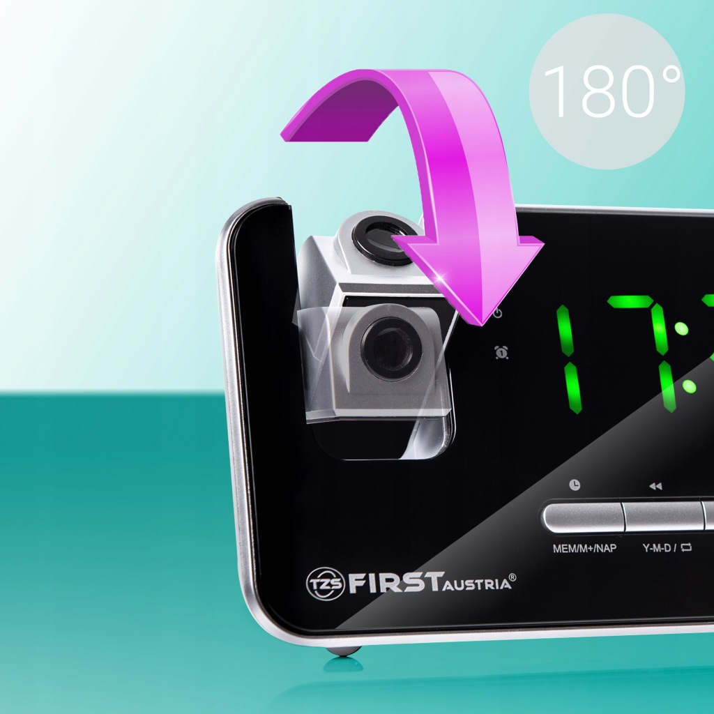 радіогодинник блискуче виглядають в будь-якому просторі, виготовлені з високоякісного чорного глянсового пластика, забезпеченіобертовим на 180 градусів проектором .