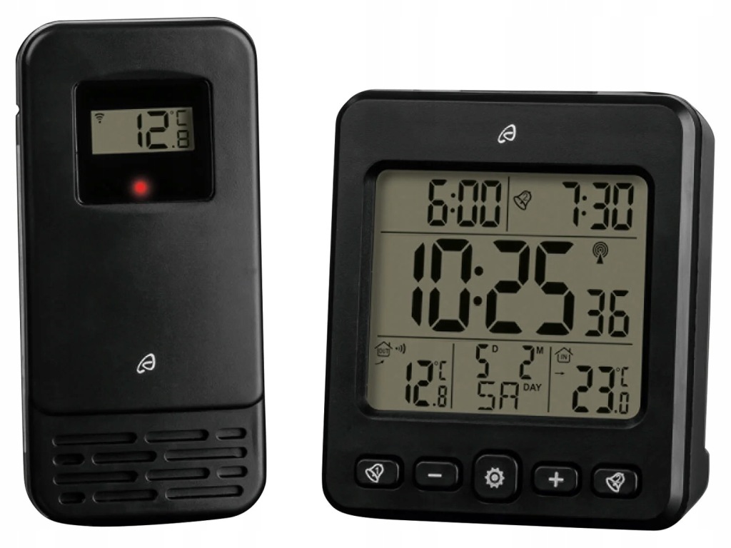 - радіокерований годинник з автоматичним налаштуванням дати часу (з урахуванням літнього і зимового часу)