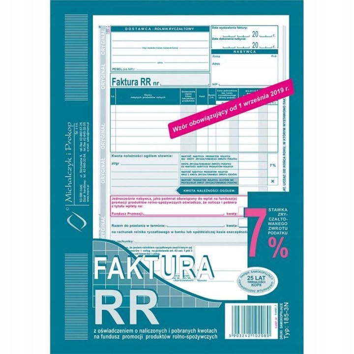 рахунок-фактура ПДВ Rr A5 для фермерів 185-3-N