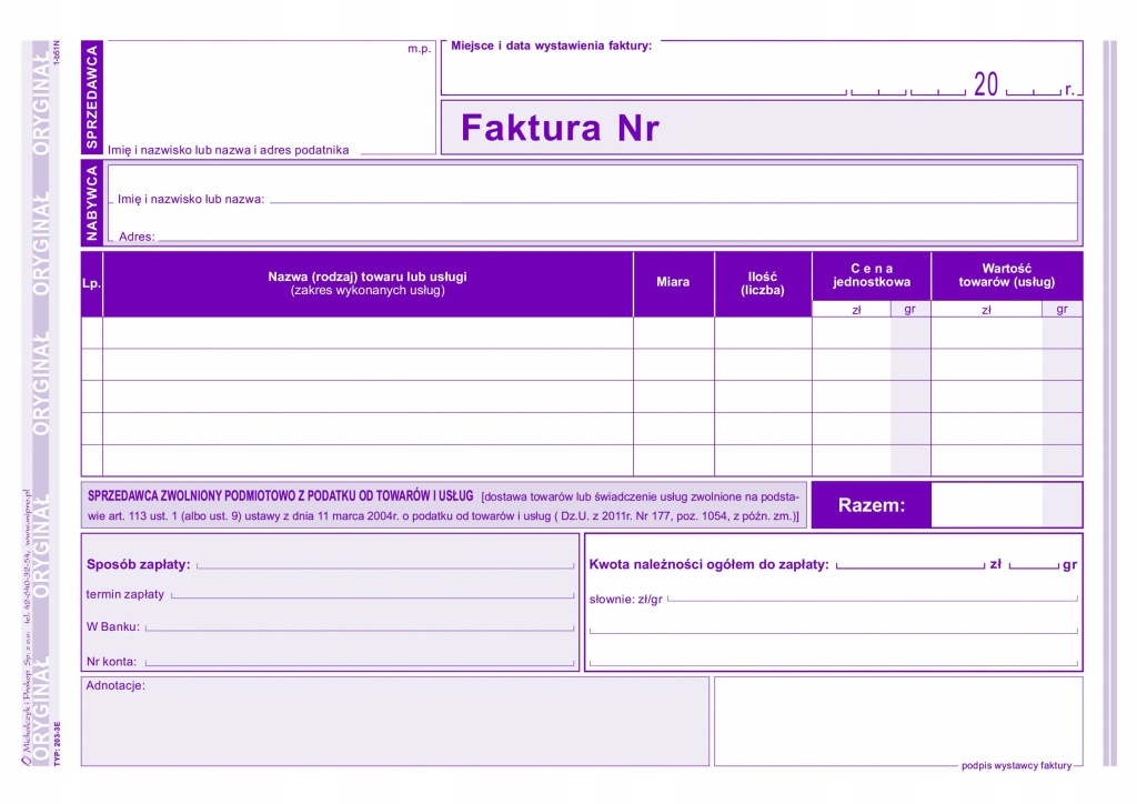 рахунок-фактура для звільнених від податків друк А5 Михальчик і Прокіп 80 аркушів