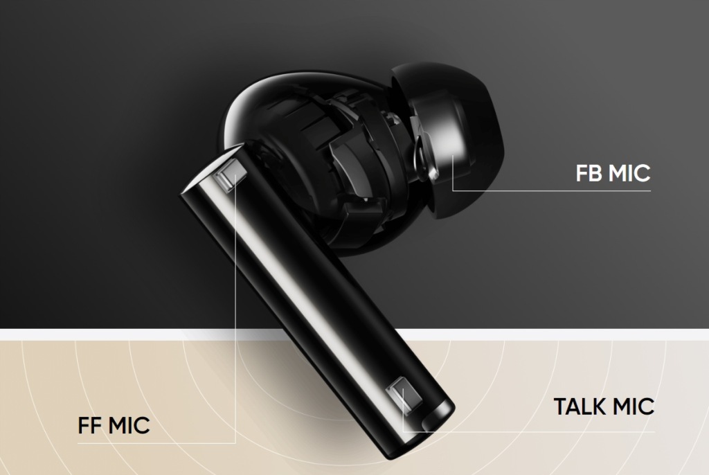 інтелектуальне адаптивне шумозаглушення забезпечує точне шумозаглушення в різних ситуаціях. Навушники адаптуються до звукового середовища користувача, пропонуючи оптимізоване прослуховування і безперешкодне прослуховування. Крім того, 6-мікрофонна конструкція в поєднанні з передовим алгоритмом зниження навколишнього шуму ENC, технологією шумозаглушення з використанням формування променя і алгоритмом навчання, заснованим на глибоких нейронних мережах dnn, значно знижує навколишній шум під час розмови, забезпечуючи чіткість кожного слова.