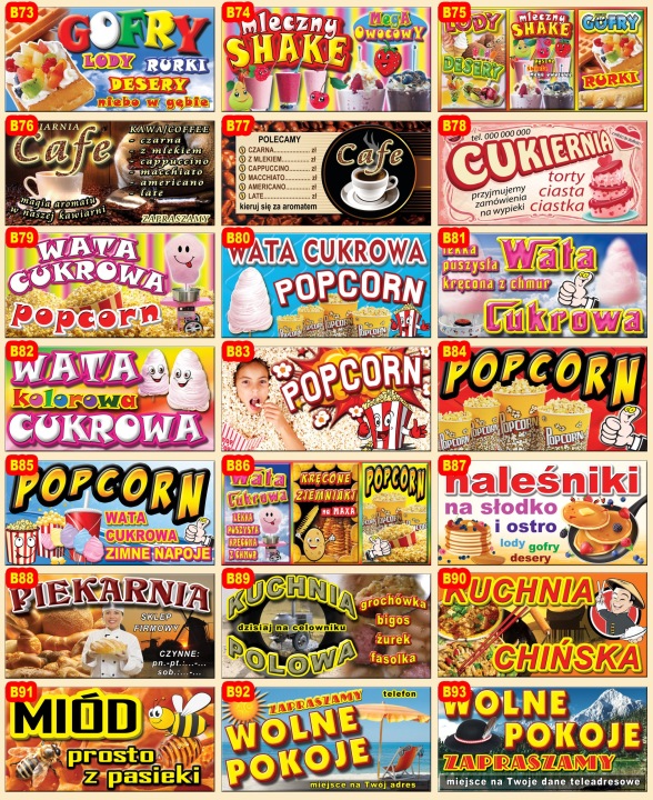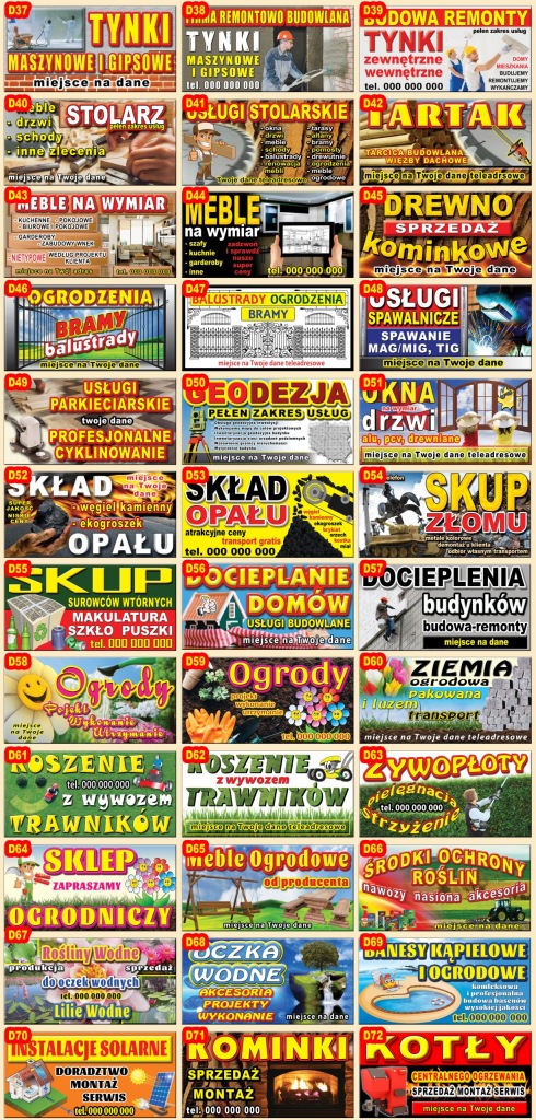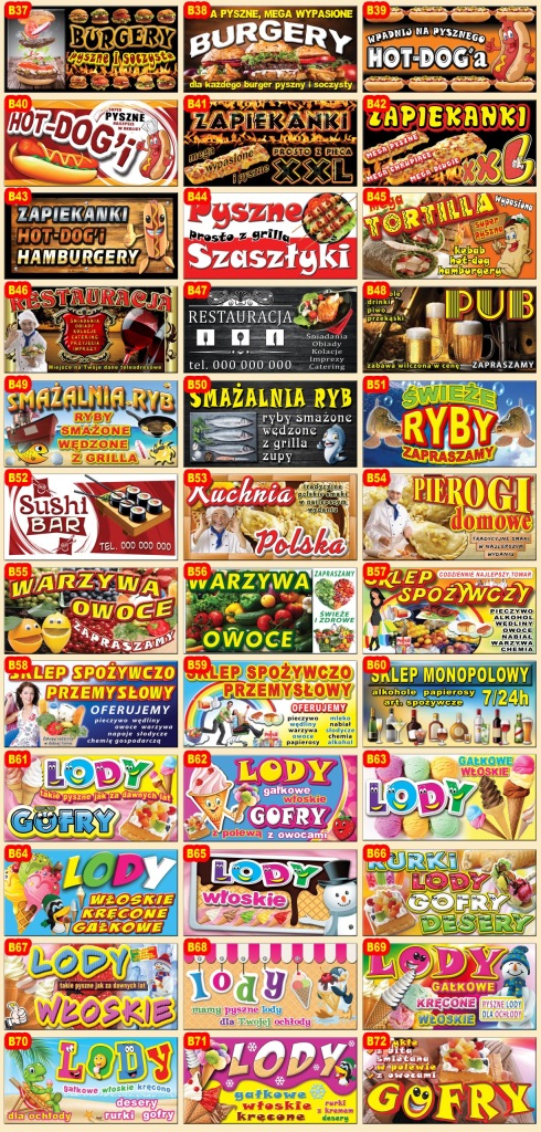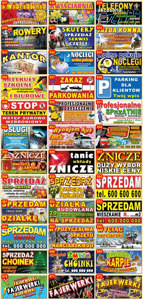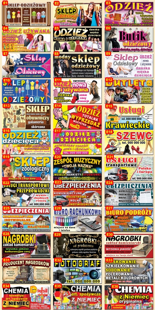 рекламні банери з готовими візерунками різної тематики і різних розмірів.в ціну аукціону входить також виготовлення нового дизайну для друку в нашій друкарні.