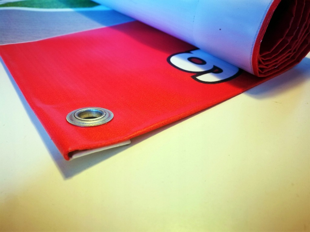 виготовлений з матеріалу преміум-класу. Він має краю, посилені закочуванням і зварюванням, а також вушка, встановлені кожні 50 см.повнокольоровий друк сольвентними фарбами проводиться на професійному обладнанні.