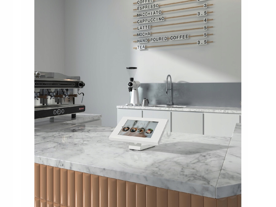 високоякісна настільна підставка для планшета з можливістю кріплення до стіни. Корпус, що замикається на ключ, забезпечує максимальний рівень безпеки для розміщеного в ньому пристрою.