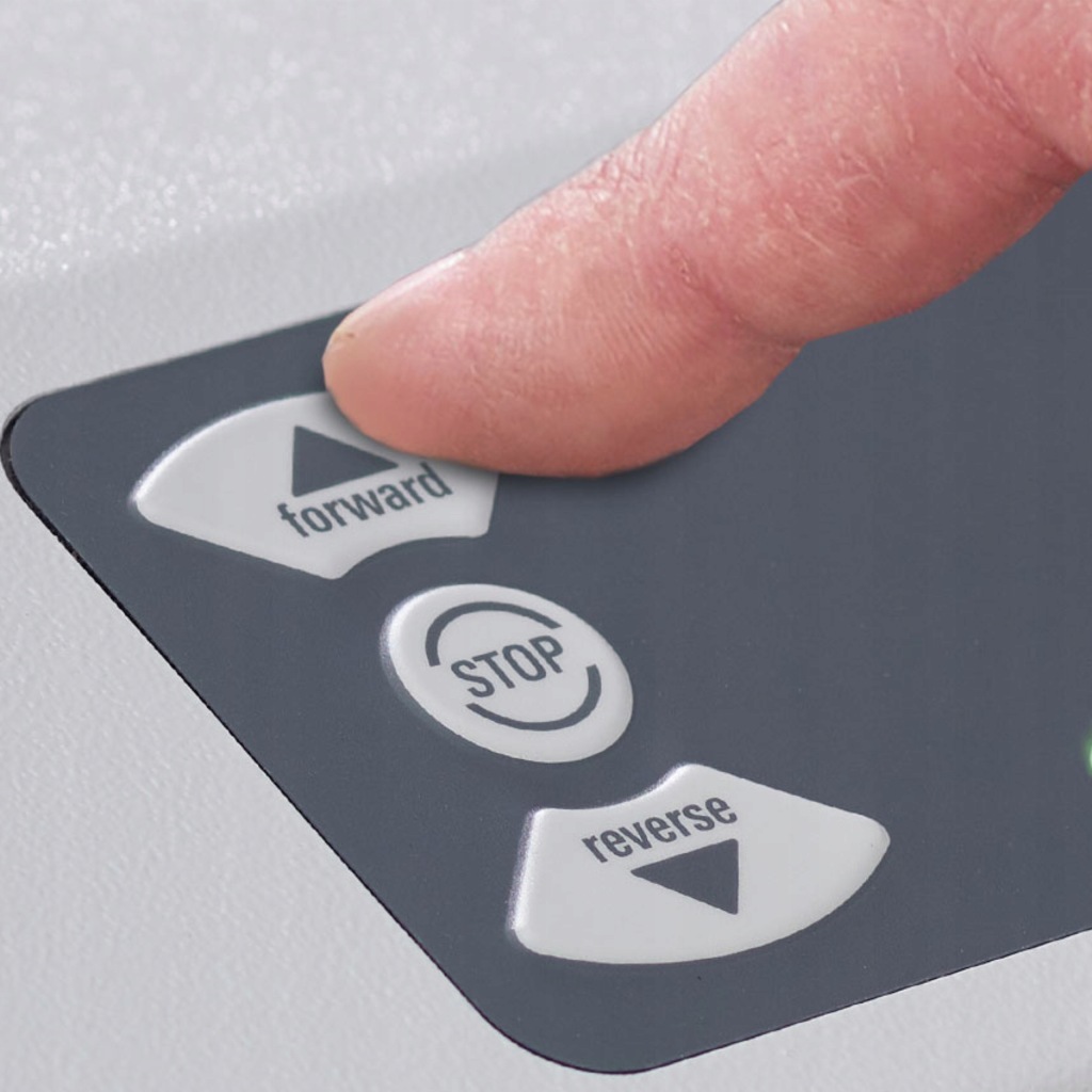 можливість установки двох ступенів стиснення пакувального матеріалу в залежності від застосування. Потужний двигун забезпечує надійну роботу навіть в безперервному режимі. Інтуїтивно зрозуміла панель управління зі світлодіодами на міцній мембранної клавіатурі сигналізує про робочий стан пристрою. Вбудована функція turbo запобігає заїдання за рахунок миттєвого збільшення потужності . Завдяки бічним втопленим ручкамви можете легко підняти пристрій і транспортувати його. Міцні ніжки забезпечують стабільне положення пристрою.