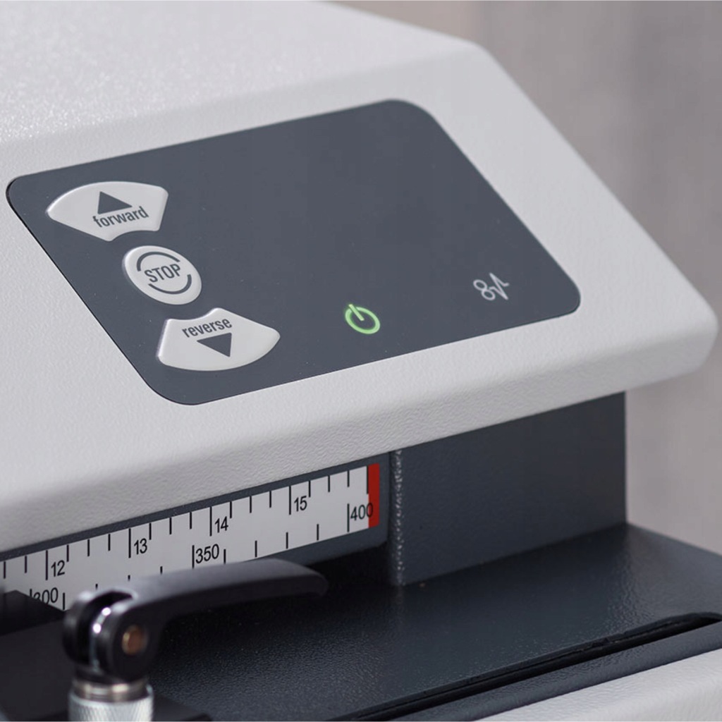 ✔️ ; з безступінчатим регулюванням ширини відрізаного матеріалу зі шкалою можна виготовити матеріал з максимальною точністю.