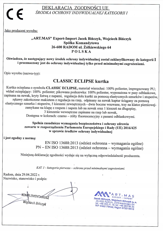CE️CE Кат.і EN ISO 13688: 2013