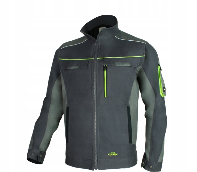 захисна куртка CLASSIC STRETCH SLIM куртка нового покоління з виключно привабливим дизайном і відмінною функціональністю. Зручний і сучасний дизайн Slim ідеально підходить до фігури, не обмежуючи рухів, завдяки використанню матеріалу з додаванням спандекса. Виготовлений зі спеціалізованої тканини зі складом: 60% бавовна, 38% поліестер, 2% спандекс з щільністю 260 + / -10 г / м2 і міцним щільним переплетенням.