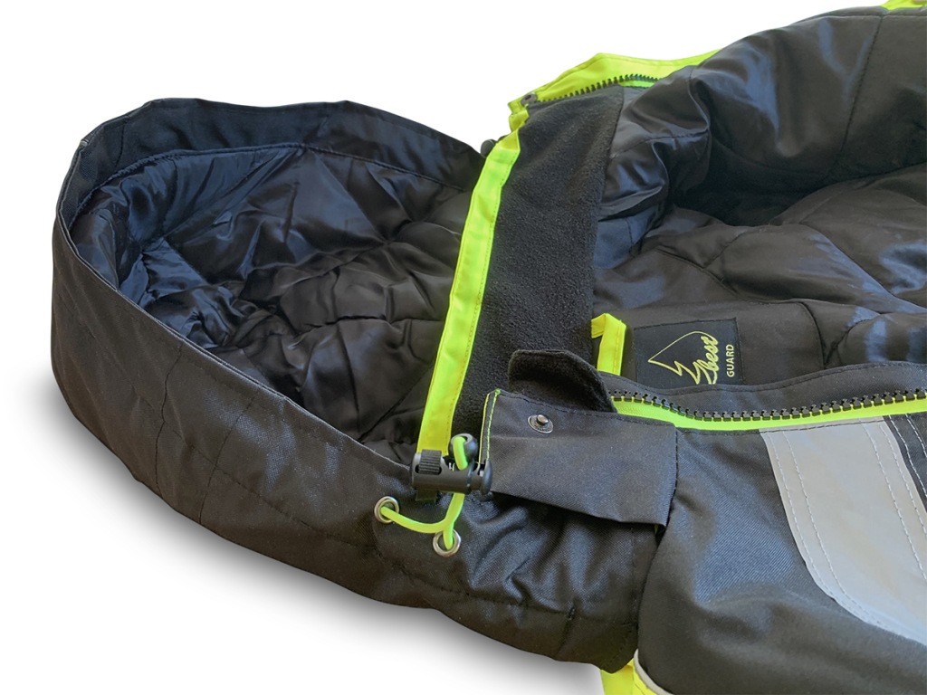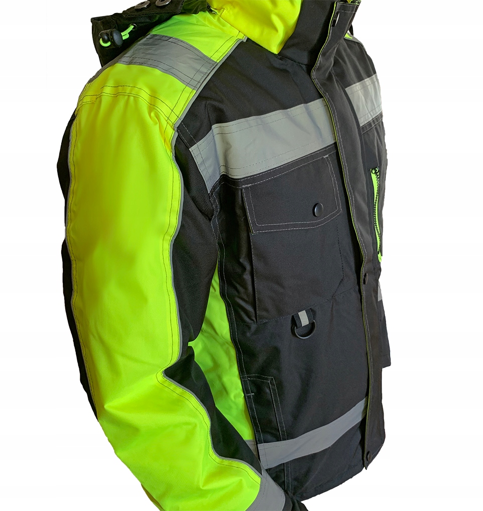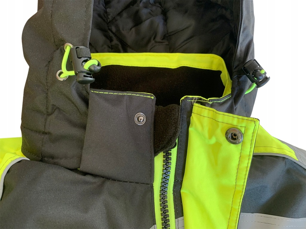 - світловідбиваючі смуги на тулубі, рукавах і капюшоні.