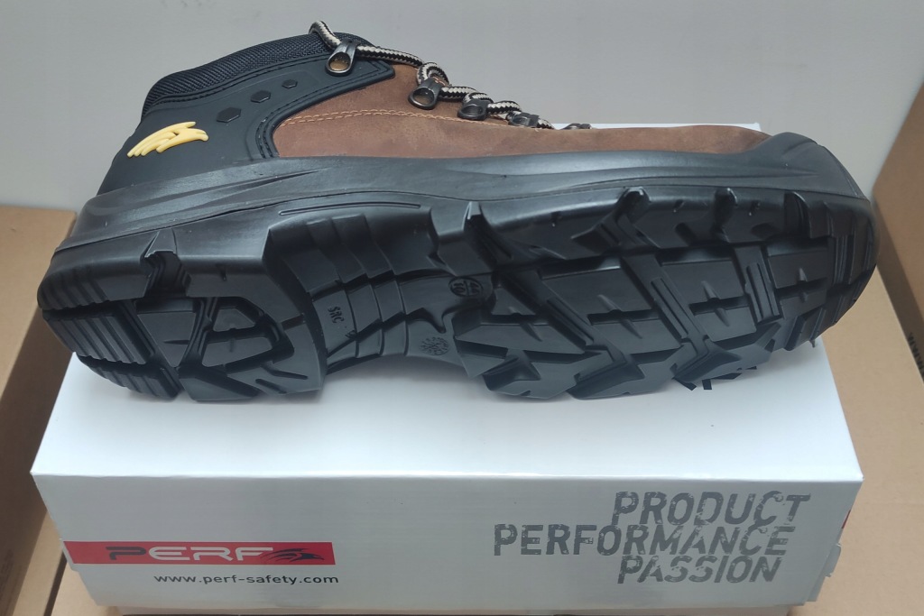 підошва: легка система підошов PU / PU з подвійною щільністю з антистатичними властивостями, амортизацією, термостійкістю до 120 ° C і стійкістю до ковзання відповідно до SRC.