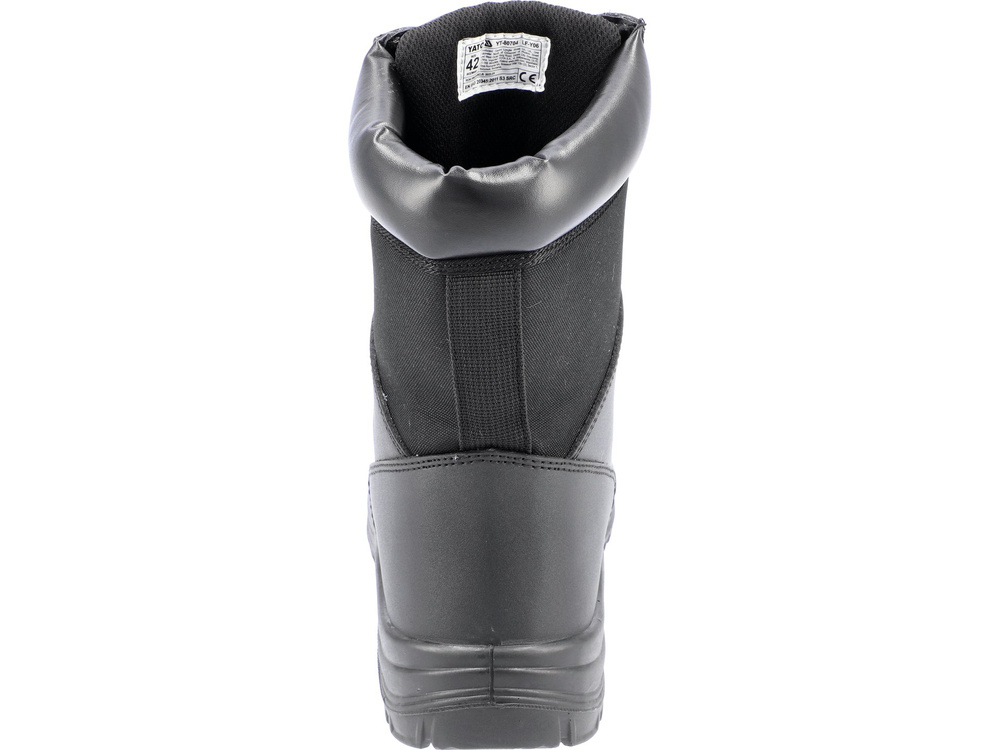 високі робочі черевики YT-80705 із серії Top S3-це модель з ударостійким сталевим носком, сталевою устілкою із захистом від проколів і спеціально розробленою підошвою, що перекриває носок взуття, яка запобігає пошкодженню цієї частини. Завдяки натуральній шкірі і компактній конструкції взуття сильно обмежує пропускання і поглинання води, в той же час завдяки спеціальним вставкам з міцного Оксфордського матеріалу з сітчастою структурою шкіра може дихати.