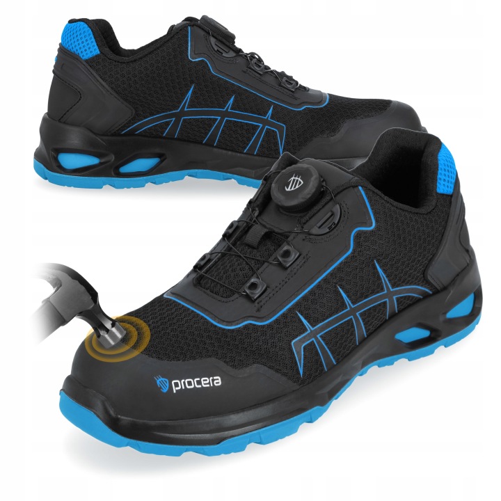 верхня частина взуття виготовлена з міцних і дихаючих текстильних матеріалів. Передня і задня частини додатково посилені захисним матеріалом. нековзна ,антиелектростатична і маслостійка підошва з 2 шарів з диверсифікованою щільністю (PU / PU) для підвищення мʼякості, підвищення комфорту при носінні і захисту взуття від пошкоджень. поглинання енергії в пʼяткової частини. Підкладка з дихаючого трикотажу. Зручна мʼяка внутрішня вставка. спортивний дизайн.Категорія s1ps SR fo відповідає вимогам стандарту EN ISO 20345:2022.