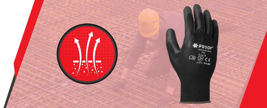 рукавички зовні покриті полімерною поверхнеюна водній основі, а з внутрішньої сторони безшовної трикотажної вставкою, яка забезпечує дуже хорошу вентиляцію.завдяки цьому вони не тільки ефективно захищають руки, але і зручні у використанні.