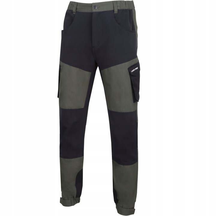 робочі штани для талії Lahti Pro l40538 відрізняються сучасним, зручним кроєм. Новинка-використання вставок з стрейч-матеріалу "4-way elastic". Вони розташовані в місцях, де під час роботи виникають напруги, тобто в промежині і навколо колінних суглобів. Стрейч-тканина "4-way elastic" - це високоеластична тканина з міцним зовнішнім шаром, водостійка і вітрозахисна. Має властивості відведення вологи зсередини на поверхню матеріалу. Завдяки своїй гнучкості і розтяжності в 4 напрямках він значно підвищує комфорт і не сковує рухів. Міцний полотно тканина. Тканина Canvas, виготовлена з 65% поліестеру 35% бавовни, являє собою тканину зі стильним зовнішнім виглядом і привабливою текстурою. Він має текстуру, близьку до полотна, що робить його ідеальним матеріалом для виготовлення всіх видів робочого одягу. Бавовняна тканина Canvas має міцне і щільне переплетення, що робить її міцною тканиною. Робочі штани зеленого кольору Lahti Pro l40538 виготовлені з тканини вагою 240 г / м2, що складається з 35% бавовни і 65% поліестеру. Пʼять зручних і функціональних - три внутрішніх і два зовнішніх-кишені в тому числі два закритих на липучці. Додаткова задня кишеня на блискавці. Регулювання талії за допомогою знімача. Штанини з регульованим липучкою.робочі захисні штани для талії Lahti Pro l40538 входять в першу категорію засобів індивідуального захисту. Вони мають декларацію CE і відповідають стандарту EN ISO 13688.